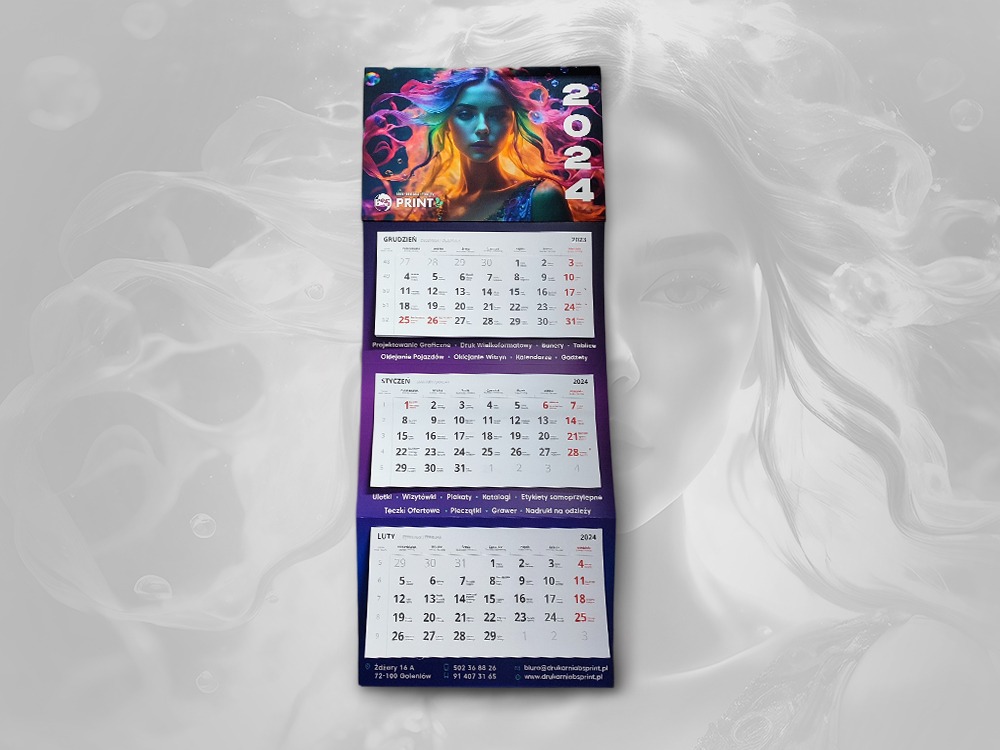 - Podkład – karton 300g, kalendaria – offset 80g, główka kreda mat 300g